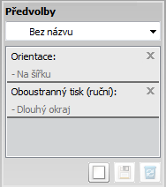 Chcete-li využít pokročilých tiskových funkcí, klepněte na tlačítko nebo v okně (viz Otevření předvoleb tisku). |