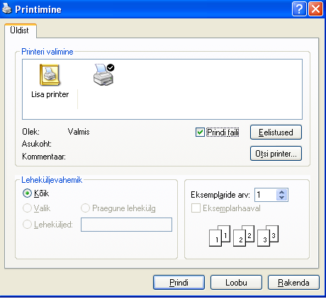 XPS printeri draiver: kasutatakse XPS failiformaadi printimiseks.
