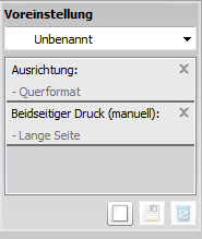 Um die verfügbaren erweiterten Druckfunktionen zu nutzen, klicken Sie im Fenster auf oder (siehe Öffnen des Fensters Druckeinstellungen). |