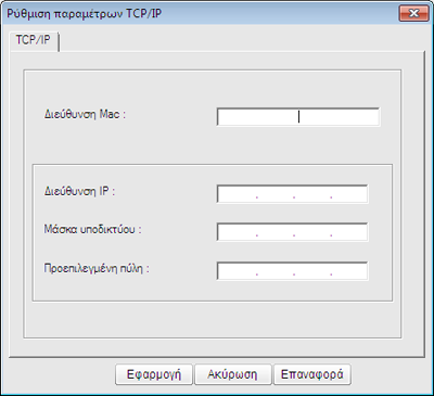Εισαγάγετε τα νέα στοιχεία του μηχανήματος στο παράθυρο ρύθμισης παραμέτρων ως εξής. Σε εταιρικό intranet, ενδέχεται να χρειαστεί να σας δοθούν αυτές οι πληροφορίες από το διαχειριστή δικτύου, πριν προχωρήσετε.