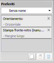 L'opzione , visibile in ogni scheda delle preferenze ad eccezione della scheda , consente di salvare le impostazioni correnti per uso futuro.