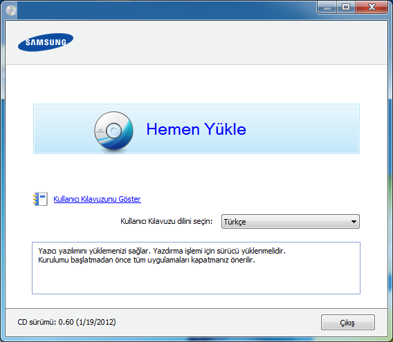 Kolay kurulum modu herhangi bir kullanıcı müdahalesi gerektirmeyen bir kurulum yöntemidir. Bir defa kuruluma başladığınızda, makine sürücüsü ve yazılım otomatik olarak bilgisayarınıza yüklenir. Komut penceresindeki veya yazarak kolay kuruluma başlayabilirsiniz.